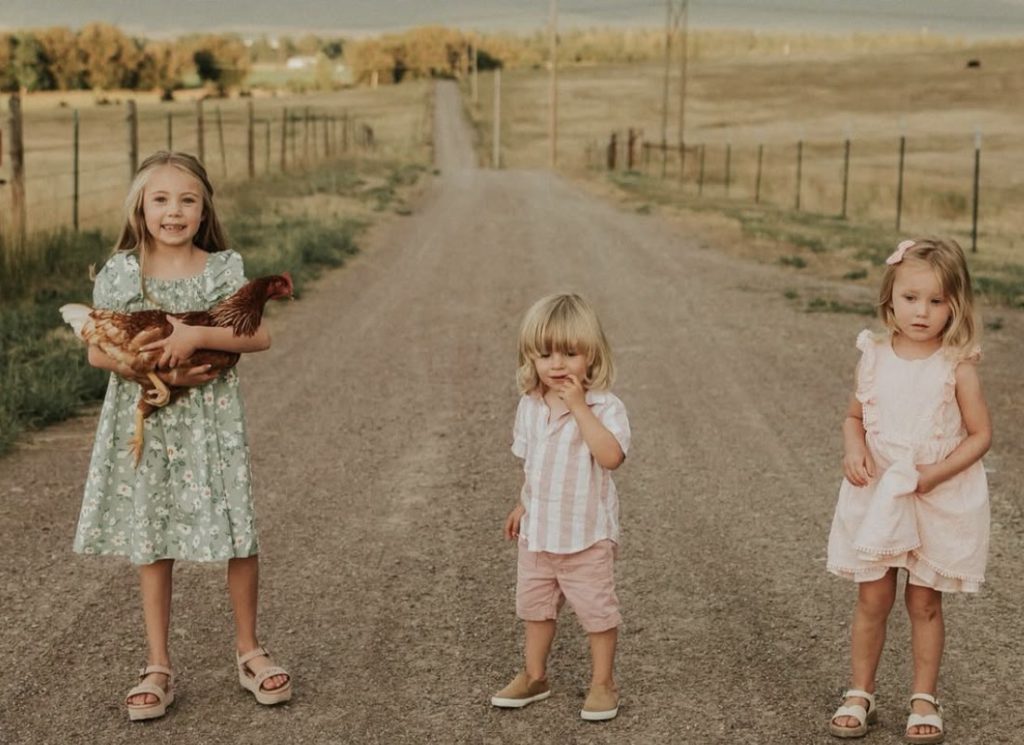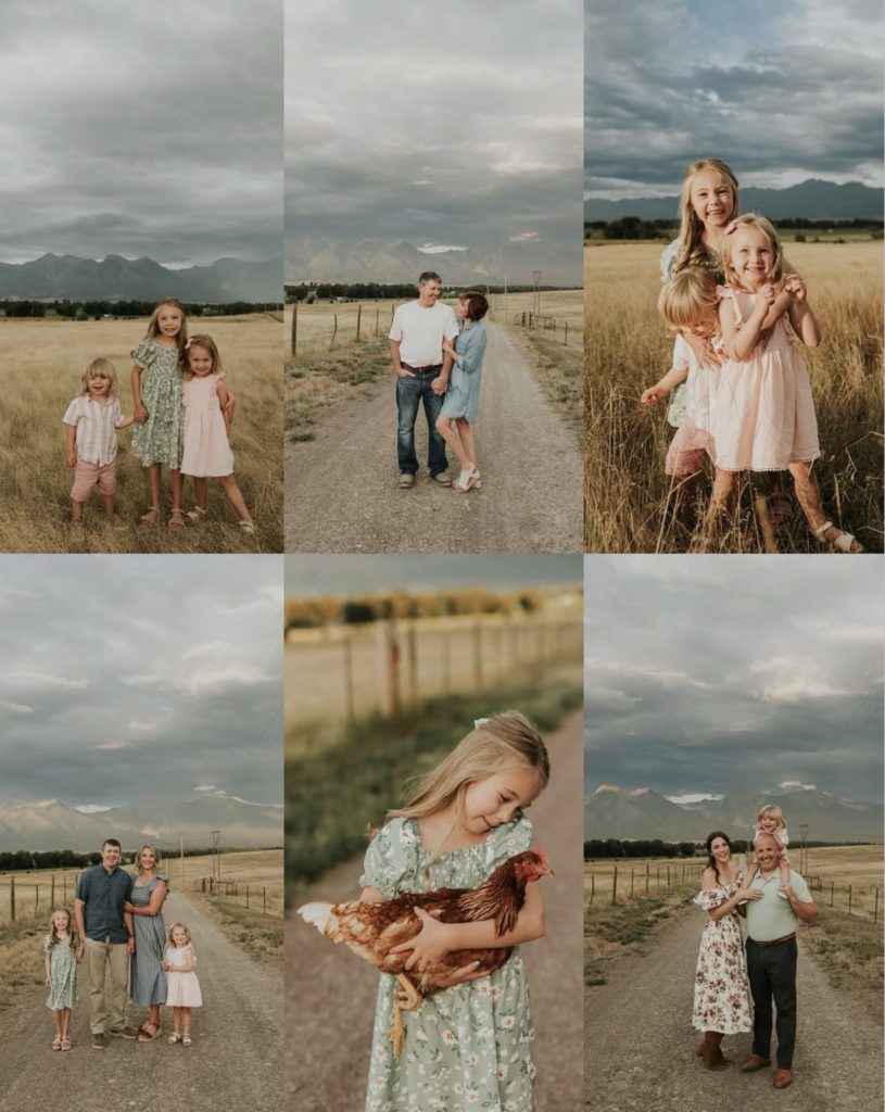 This setting—open field, mountains, soft tones—pairs perfectly with these outfits.